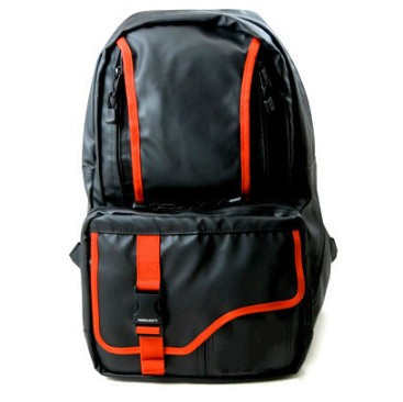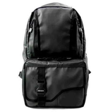 此款背包使用的是非常結實,耐水性很強的膠面布料作成。設有非常大的插袋和多功能口袋。膠面布料是防水布料的總稱,這個系列采用的膠面布料是用600DL滌綸再PRC加工,防水性很強。比起前面系列使用的膠料,此款更為輕便,這也是此產品的特點。